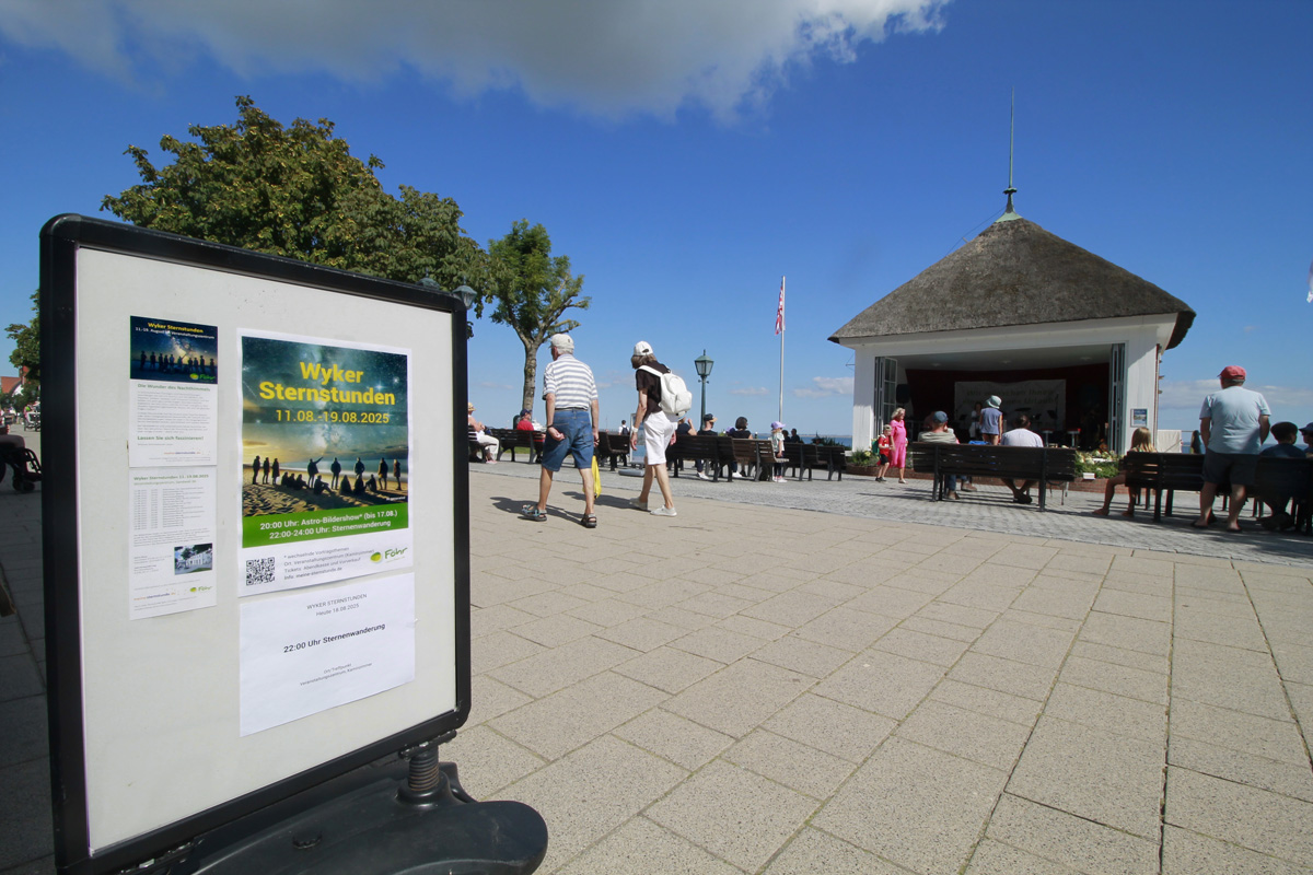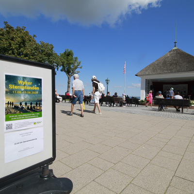 08.10.2025Fast an jedem Abend war der Kleine Saal im Strandhotel gut gefüllt, zweimal fanden mehrere Besucher:innen nur noch auf dem Fußboden Platz. Die Plakatierung seitens der Gemeinde klappte gut, die Sternstunden waren auch im „Strandlooper“ Veranstaltungsmagazin und online gelistet. Zu den Kuppelbesichtigungen und Sternenspaziergängen kamen bis zu 70 Personen.