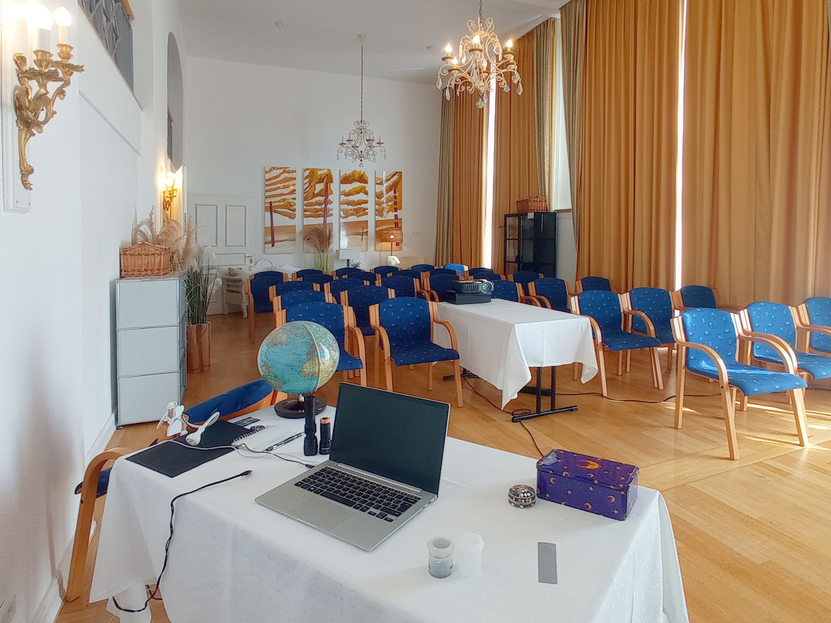 16.06.202512 Tage in einem Vortragsraum, der mit riesigen Fensterfronten freien Blick aufs Meer, Strand und Dünen bietet - schöner kann man nicht referieren. Einmal musste ich die Bildershow unterbrechen, weil die Real-Sunset-Show links daneben schöner war! Ein großer Dank geht an die Kurverwaltung, insbesondere Frau Boog und Herrn Peters. Plakate, Ausdrucke, Aufsteller, ein Globus, ein E-Piano, manche Frage zwischendurch, und der Techniker legte sogar Ostermontag ein Kabel. Gänsehautmomente, als die 12jährige L. fachlich einwandfrei über schwarze Löcher referierte, als C. ganz herrlich die Sonne spielte, als Sohnemann Fabian uns am Klavier begleitete...