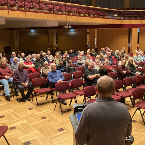 09.03.2025In die riesige Stadthalle waren ca. 150 interessierte und fachkundige Menschen gekommen. So setzte meinerseits etwas Aufregung ein, vielleicht hat es ja niemand bemerkt? Der Vortrag „Faszination Universum“ wurde als „interessant“ und „gut“ zurückgespiegelt, aber auch als streckenweise zu lang.
